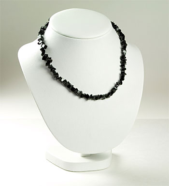 10 pc package of 17" black obsidian chip chokers with lobster claw clasp and 1" chain.