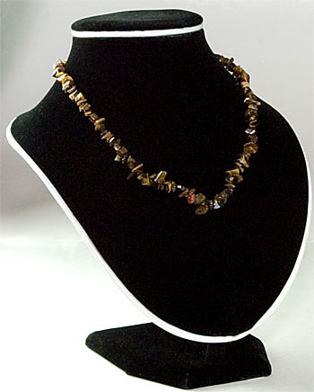 10 pc package of 17" tigereye chip chokers with lobster claw clasp and 1" chain.
