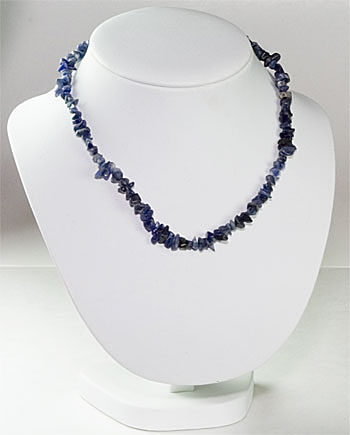 10 pc package of 17"sodalite chip chokers with lobster claw clasp and 1" chain.