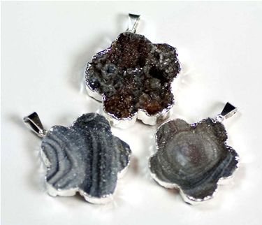 10 piece sheet of silver plated agate druzy flower pendants.