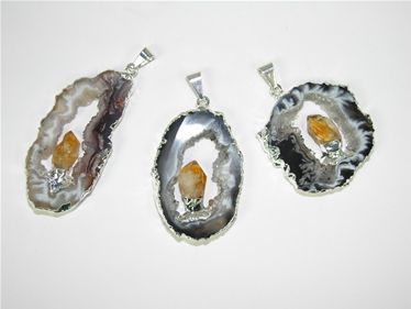 10 piece sheet of silver plated geode slice with fixed citrine point pendant