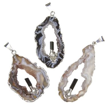 10 piece sheet silver plated geode slice with fixed tourmaline pendant